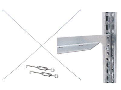 Kreuzstreben-Set für Anbauregale im Stecksystemfür Regalbreite von 750 mm und 1000 mmbestehend aus: 1 Diagonalstrebe und 1 Spannschlossverzinkt